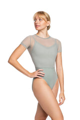 Adopt a contemporary studio look with this mesh short sleeve leotard from AinslieWear.