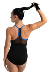 With a mesh back and contrasting trim, this halter leotard is elevated to make you stand out in dance classes and workshops.