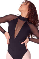 The Long Sleeve Mesh Leotard is all about edgy elegance! With a chic mock neck and a daring V mesh insert at the front, this leotard is perfect for showing off your style.