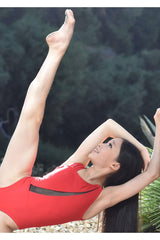With a diagonal mesh insert and asymmetrical neckline, this edgy leotard makes a bold statement in the dance studio.