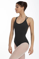 Delicate strap details transform this classic camisole bodysuit into a elegant and standout dance wardrobe piece.