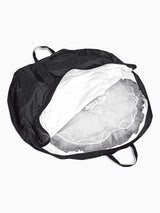- Made of durable, waterproof nylon and features a clear window for a quick look at its contents