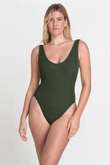 Bond-Eye Mara Plunge Neck Low Back Eco One-Piece Swimsuit Adult 004E