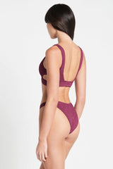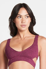 With a delicate nylon yarn woven throughout Bond Eye's classic crinkle fabric, this crop bikini top shimmers under the sun.