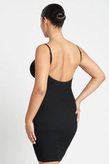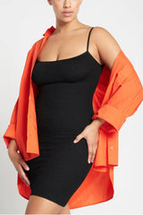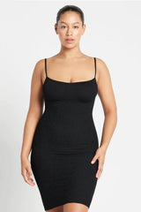 With a classic silhouette and camisole straps, this mid-length dress can be worn on the go, or dressed up for a night on the town.