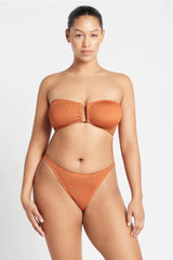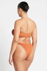With a high filament nylon yarn woven throughout Bond Eye’s classic crinkle fabric, this mid-cut swim bottom adds a subtle shimmer to your beach look.