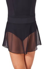 This pull-on skirt features a self-waistband for a secure and comfortable fit, while its single-layer A-line design in mesh adds an airy, elegant flow. Available in Lavender, Light Blue, and Pink with printed mesh, or classic black with solid mesh.