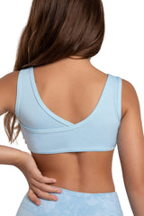 This tank bra top blends style and comfort with a delicate mesh strap overlay for added elegance and a cross-back design for a secure fit that adds a unique touch.