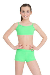 This simple and classic camisole bra top is a wardrobe staple for young dancers.