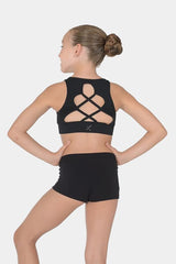 For young dancers or yoga enthusiasts, this fun and intricate crop top blends style with function for the perfect addition to your class attire.