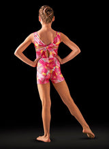 Bloch uses a bold printed fabric to create stylish biketards perfect for practice or competition.