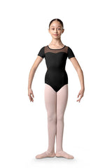 This sleek and sophisticated style for growing dancers, this cap sleeve bodysuit has the perfect amount of sparkle with its stardust embroidered mesh back.