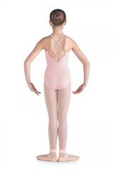 A simple camisole bodysuit with intricate straps and added details to make your young dancer stand out.