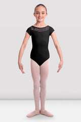 Bloch Mally Animal Print Boat Neck Cap Sleeve Bodysuit Child CL6532