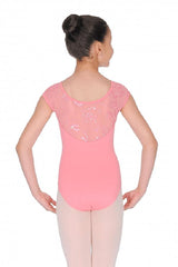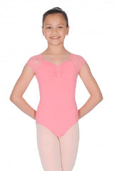 Bloch Mirella Gathered Front Glitter Mesh Cap Sleeve Bodysuit Child M1515C