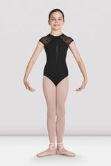 Bloch Petrina Zip Front Mesh Cap Sleeve Bodysuit Child CL8762