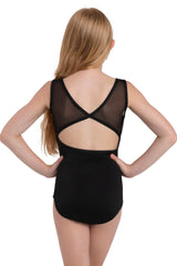 Make a statement in this tank leotard that features a pinch V-front and mesh straps that lead to a V-back with a cutout for added elegance.