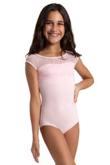 This limited edition leotard features a mesh boatneck bodice overlay and cap sleeves for a graceful and elegant studio look.