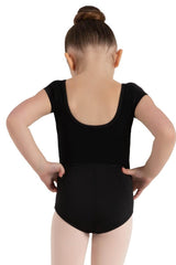 This cap sleeve leotard offers comfort with a flair of style so young dancers can move with ease and confidence.