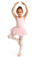 A bow back detail and glittery skirt make this tutu bodysuit a must have for young dancers.