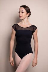 The details of this cap sleeve dance leotard are simple yet bold for an elegant studio look.