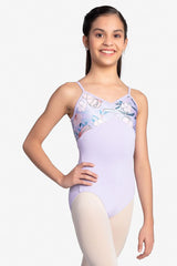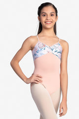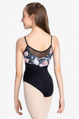 Elevated with an elegant floral printed bodice, this classic camisole leotard is comfortable yet makes a statement in the studio.