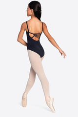 A simple camisole leotard elevated with an intricate multi-strap back design.