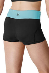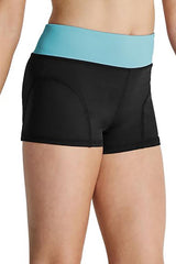 A basic short that will quickly become an essential part of your dancer’s wardrobe with its contrasting coloured waistband and curved seam detail.