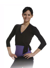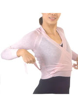 A comfortable long sleeve wrap top to keep your dancer warm in class and rehearsals.