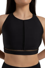 Offering exceptional support and flexibility, this crop top ensures a perfect fit with wide adjustable camisole straps and elastic waistband.