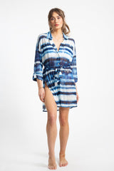 Featuring the Escape Collection’s striped mesh fabric, this lightweight shirt dress makes for the perfect swim cover up.