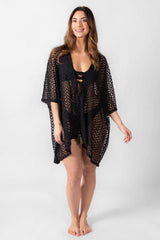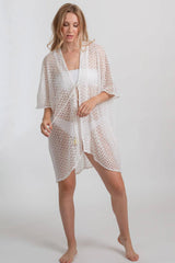 Feel glamourous by the beach or the pool in this chevron lace kimono-style coverup.