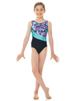 Mondor Turquoise Feather Print/Solid Gymnastics Leotard Child 27858