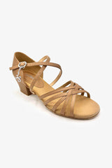 This open-toed Cuban heel from Lacey Schwimmer’s ballroom shoe collection is a dance essential suitable for dancers of all ages. With a comfortable 1 1/4" heel, this shoe offers unparalleled comfort and stability for both practice and performance.