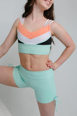 Inspired by contemporary and ballet dance artists, the Ella collection aims to help dancers feel the movement through their style. In gorgeous soft tones and colours, the Ella crop top will highlight your grace and technique as you move across the floor.