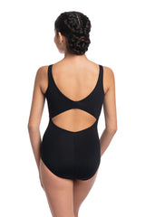Peek-a-boo cut outs and a front clasp detail add a unique flair to this tank leotard.