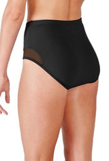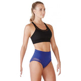 A staple for your studio attire, stay comfortable and confident in this high-waisted brief with a contemporary flair. The stylish mesh inserts give the illusion of a high leg style whilst still providing coverage so you can move comfortably.