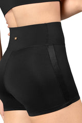 Complete your dance wardrobe with this high waisted short featuring a high shine accent for added interest.